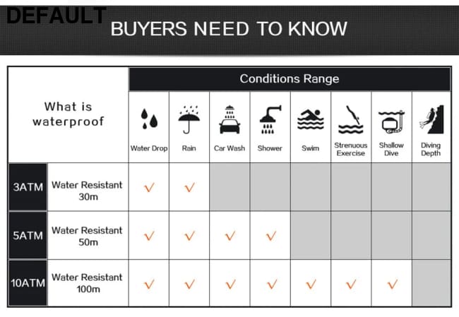 - 3ATM / 30M Water Resistant (Support Cold Shower and Swim, do not operate watch when underwater, Do not support hot water);