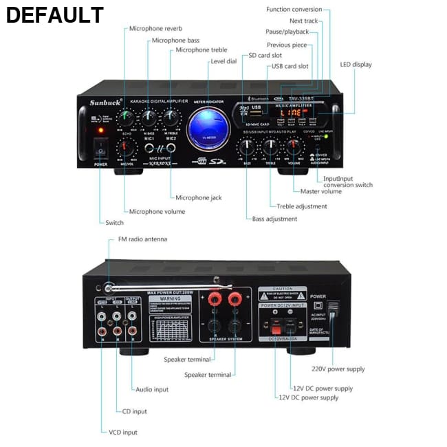 Amplificador Bluetooth AV Power Audio Amplifier Board Stereo Home Sound Amplifiers With MIC USB SD FM Professional Car Amplifier