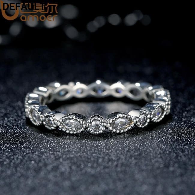 BAMOER 925 Sterling Silver Alluring Brilliant Marquise Stackable Finger Ring PA7130