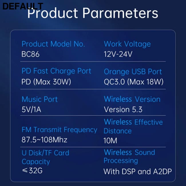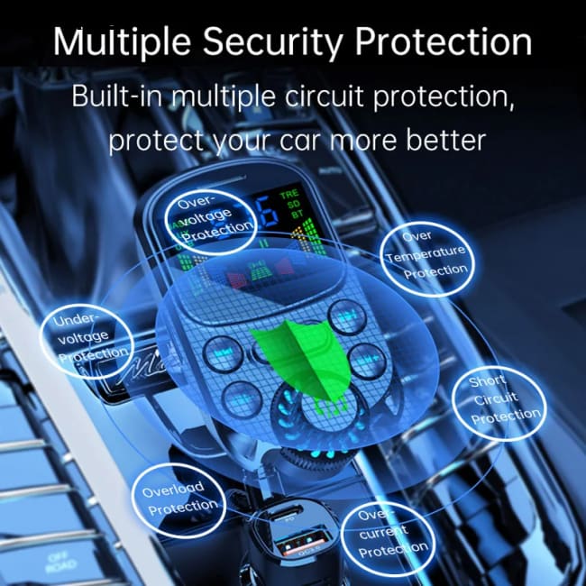 Car FM Transmitter Wireless Handsfree Car Kit Bass 3.5mm AUX Audio Receiver QC3.0 PD 30W Fast Charging Mp3 Player