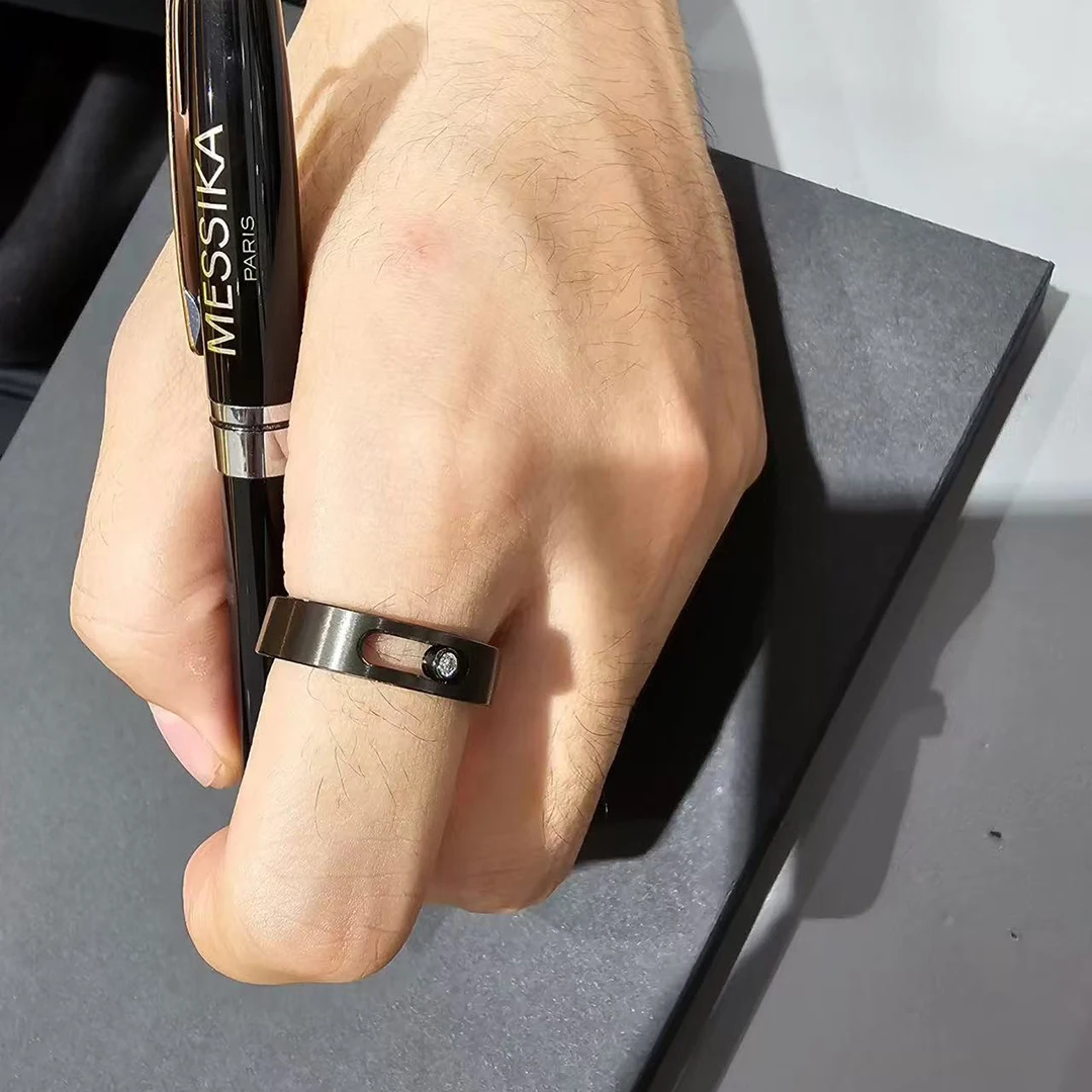 Classic Luxury Jewelry MOVE TITANIUM Series White Diamond Men's ring, Movable Stone, S925 Pure Silver Material, New Year's Gift