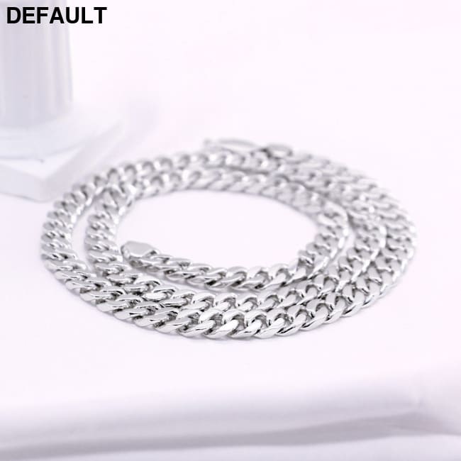 Cuban Riding Crop Necklace 6.5MM White Copper Plated With Thick Silver Buttons For Men 51cm / Necklaces Sterling