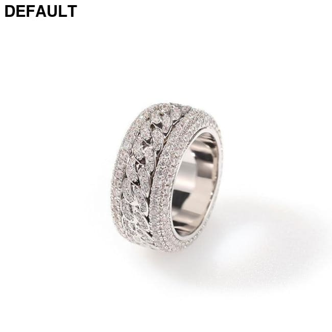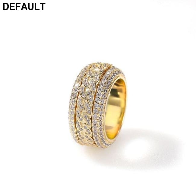 Hip Hop Bling Iced Out AAA Cubic Zirconia CZ Ring for Men Women Spinner Cuban Chain Round Rings High Quality Party
