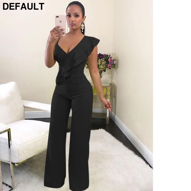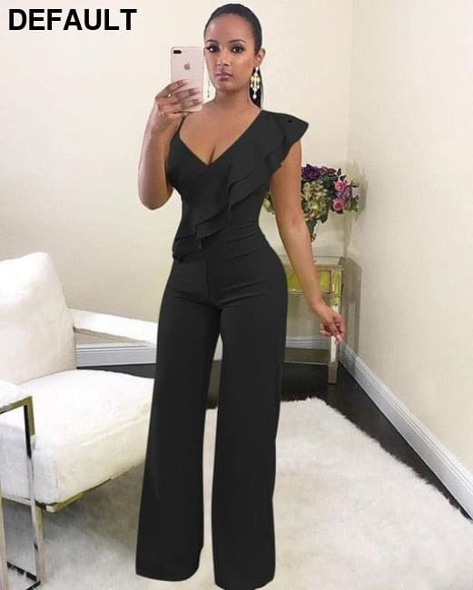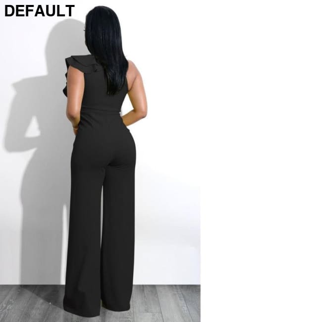 One Shoulder Ruffles Jumpsuits For Women Fashion V Neck Long Wide Leg Pants black / S & Rompers Best Selling Products