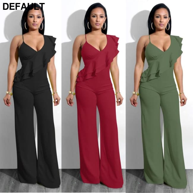 One Shoulder Ruffles Jumpsuits For Women Fashion V Neck Long Wide Leg Pants & Rompers Best Selling Products