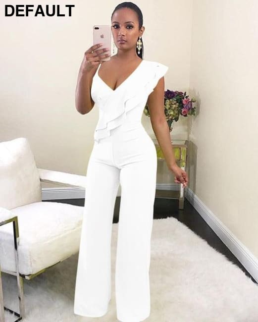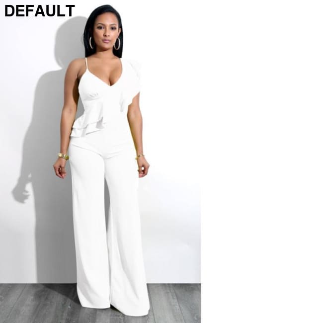 One Shoulder Ruffles Jumpsuits For Women Fashion V Neck Long Wide Leg Pants white / S & Rompers Best Selling Products