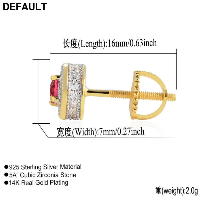 S925 Silver Whole Body Sterling Earrings Round Micro-set Sapphire Ruby Men And Women BESES036-red