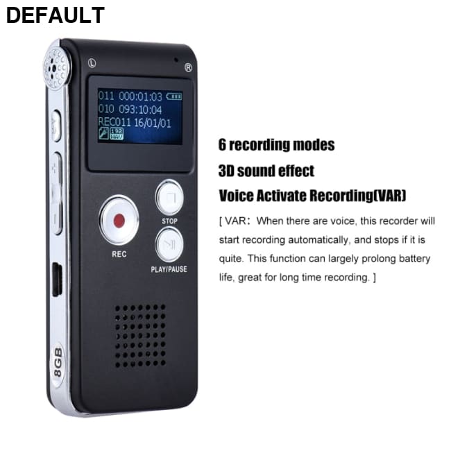 USB Voice Recorder Professional Dictaphone WAV MP3 Player VAR Record Digital Audio Recording Device 8GB / Black