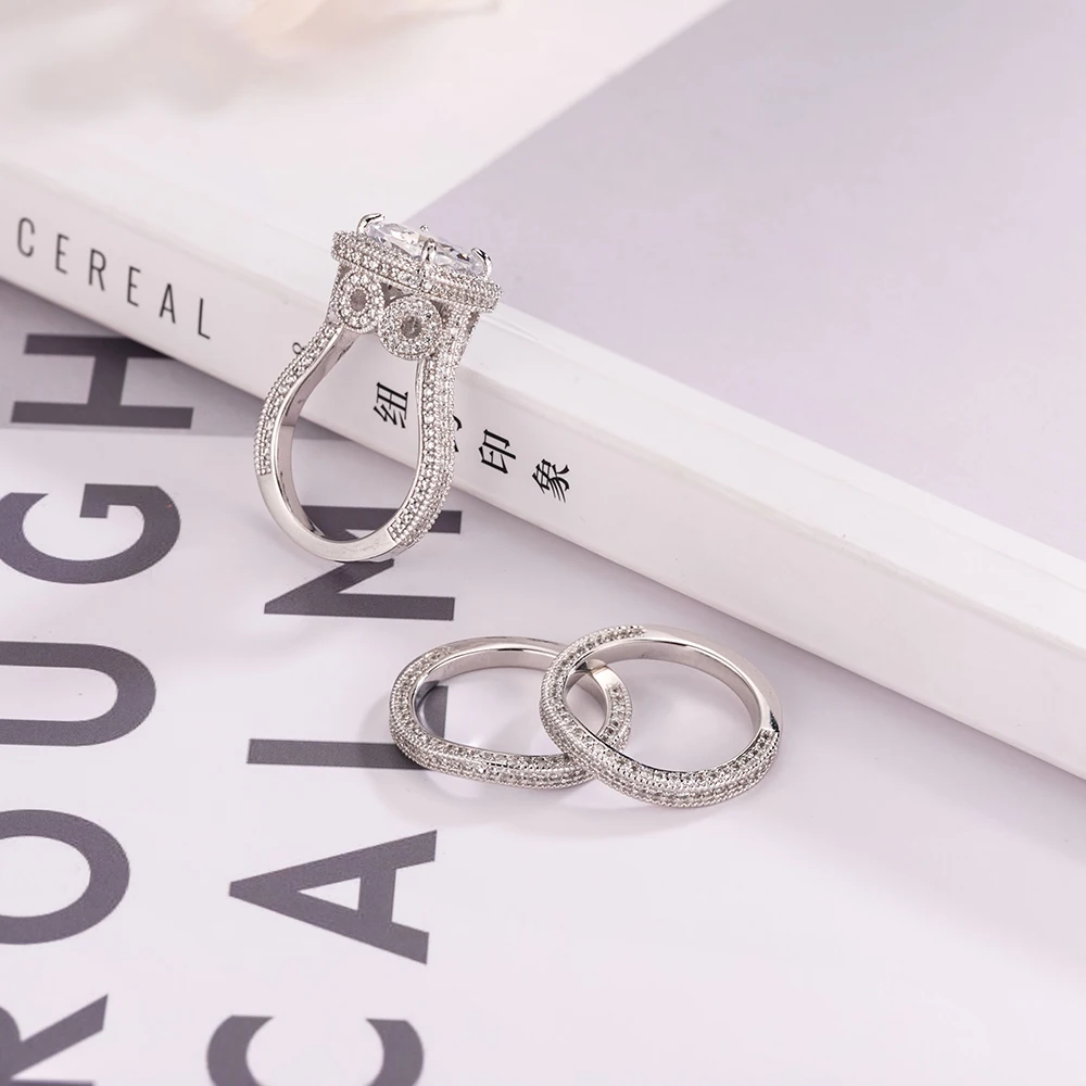 vintage 925 Sterling silver wedding rings for Women Luxury Simulated Diamond engagement Rings set 3 in bridal jewelry