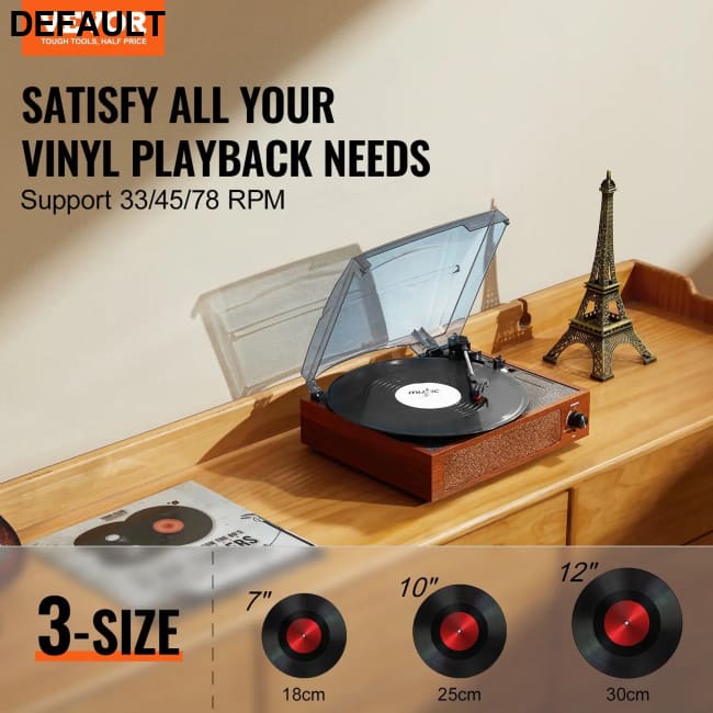 Vinyl Record Player 3-Speed Belt Driven Turntable with Built-in 10W Stereo Speakers Magnetic Cartridge Support 33/45/7