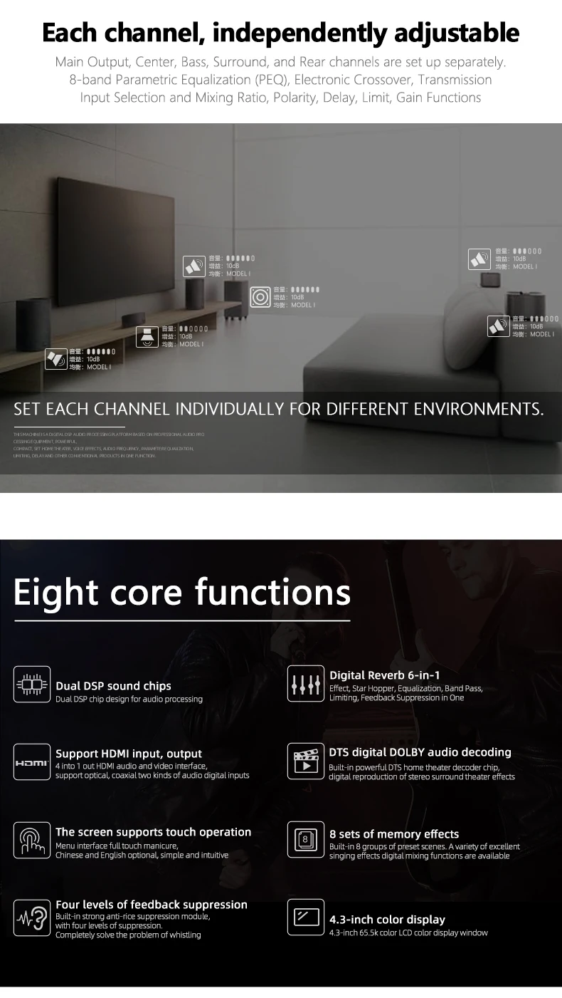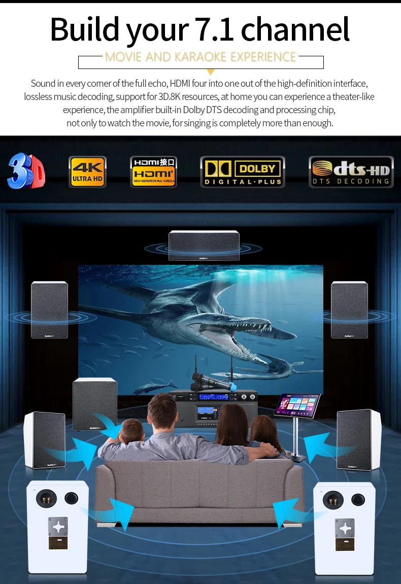 7.1 Home Theater System KTV Amplifier DTS Digital 3D/4K HD Karaoke 8-Channel DSP Power Amplifier