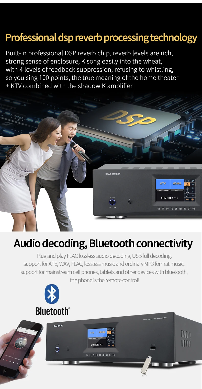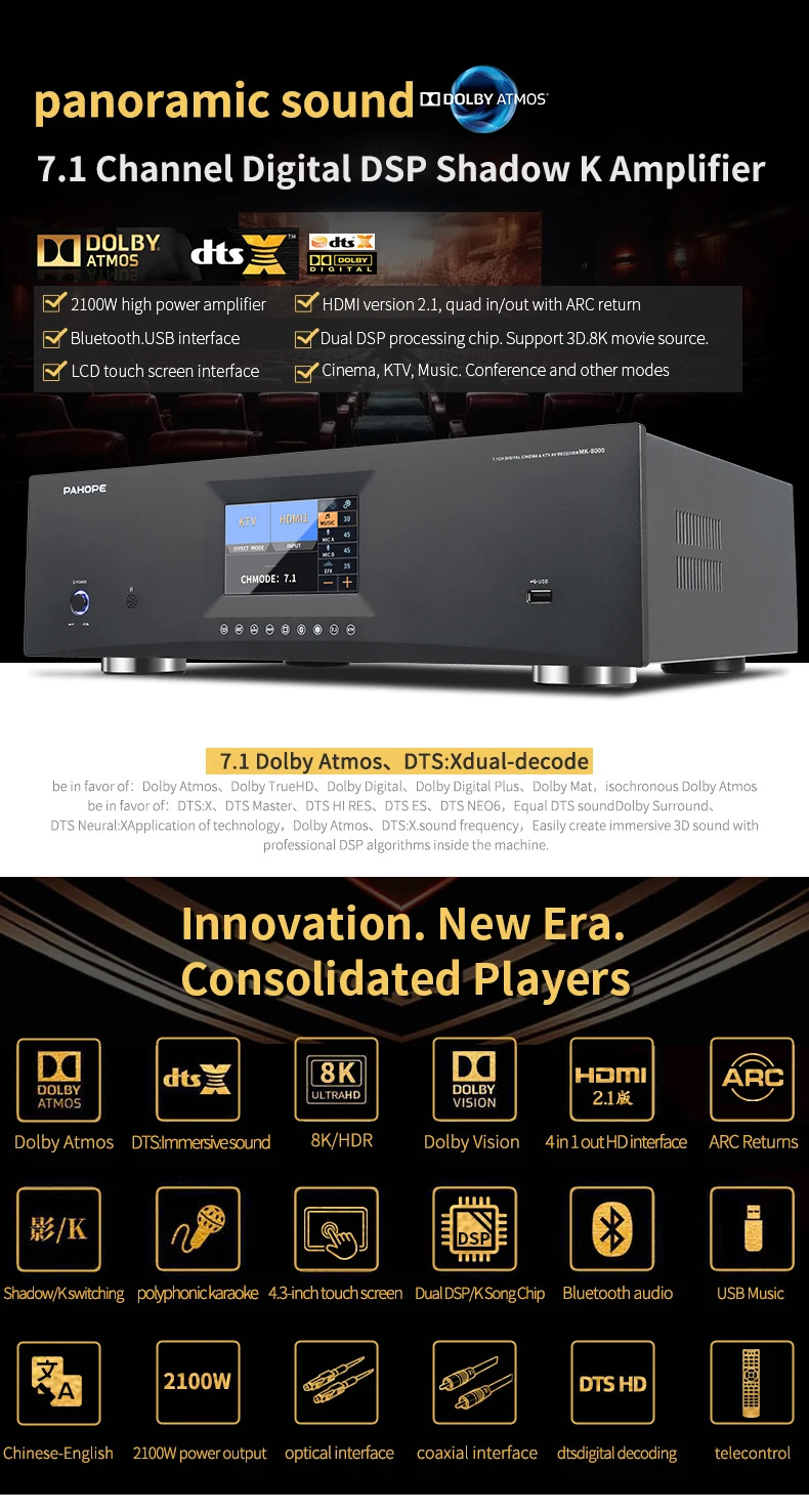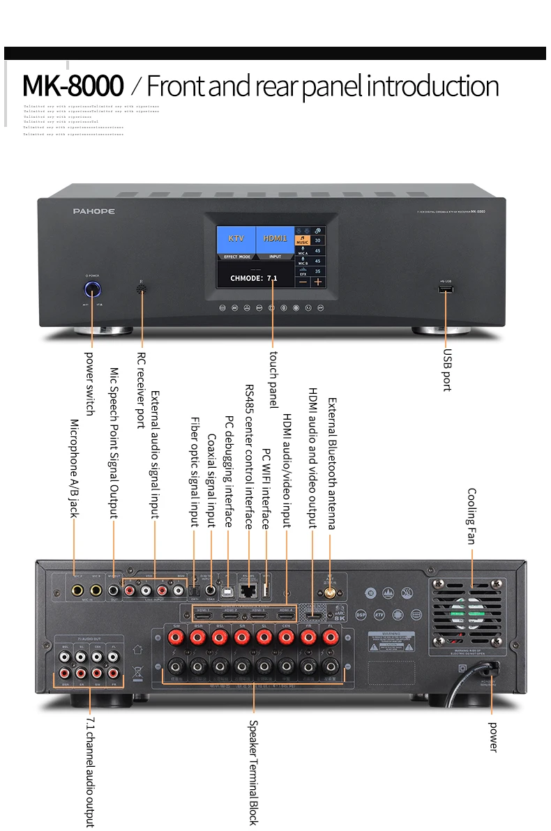 7.1 Home Theater System KTV Amplifier DTS Digital 3D/4K HD Karaoke 8-Channel DSP Power Black / MK-8000 T Audio Receiver