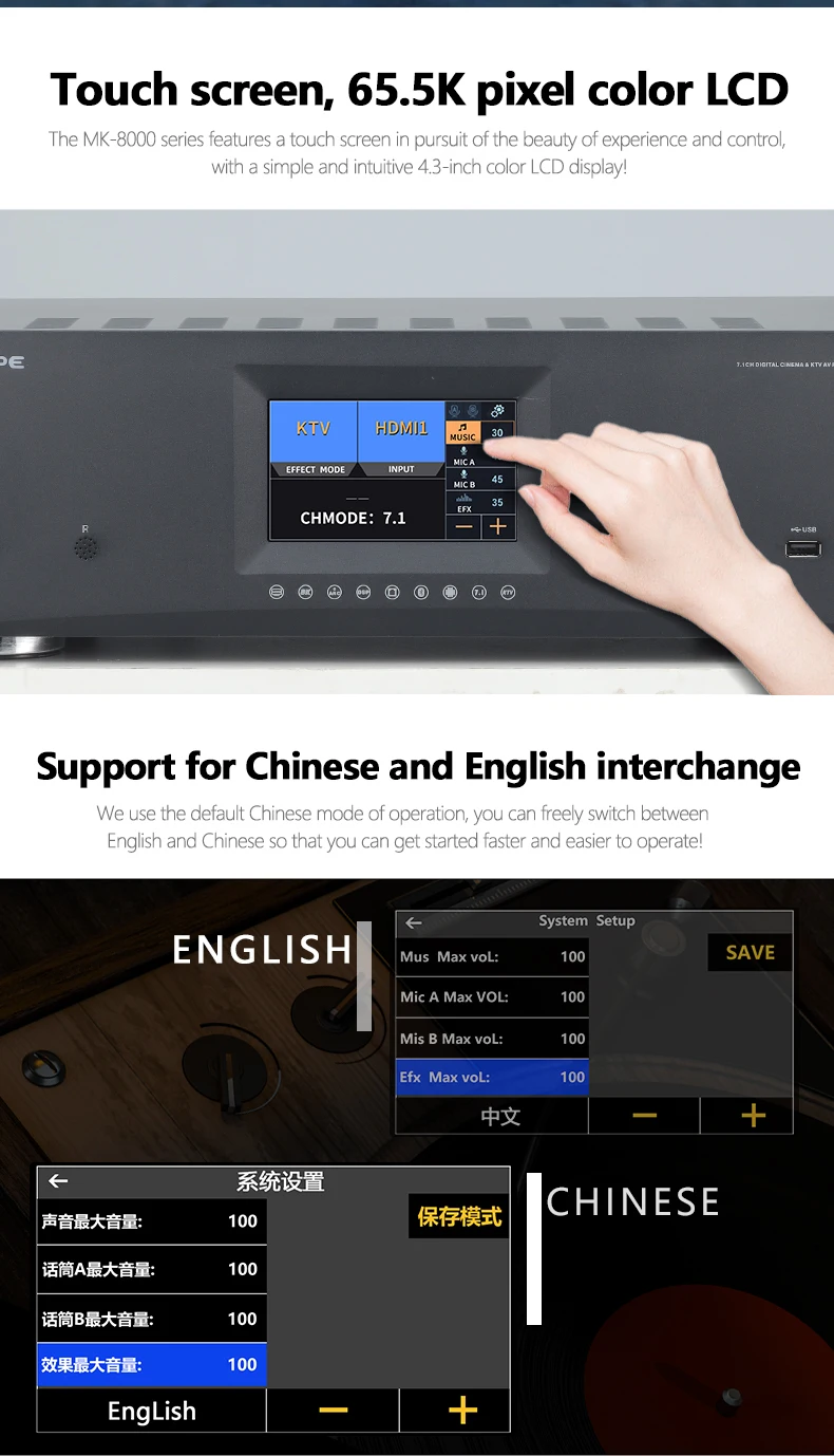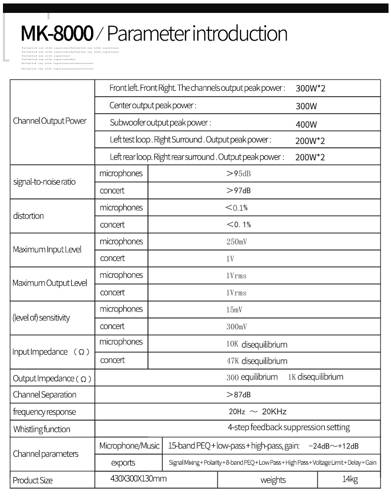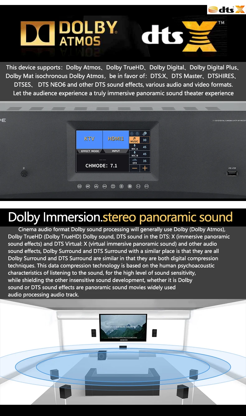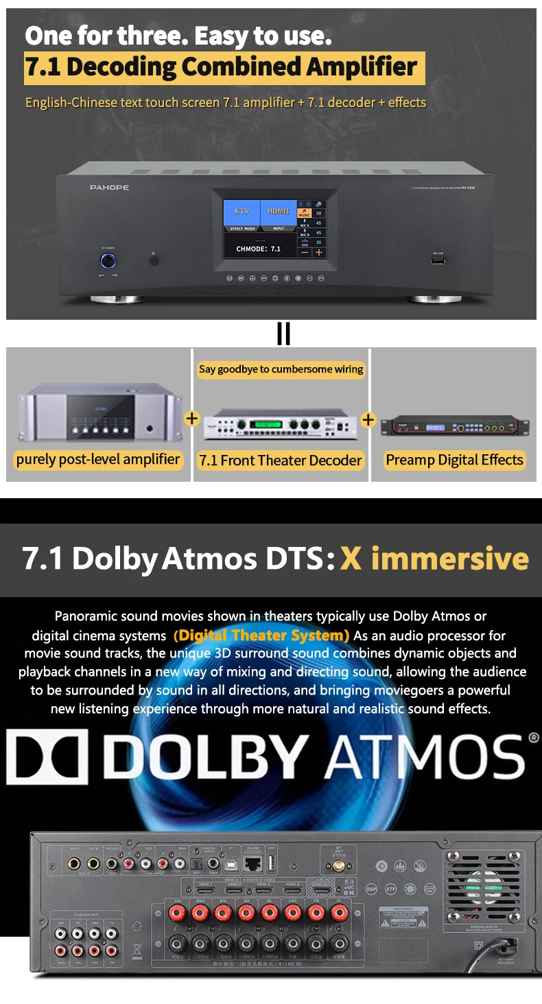 7.1 Home Theater System KTV Amplifier DTS Digital 3D/4K HD Karaoke 8-Channel DSP Power Black / MK-8000 T Audio Receiver