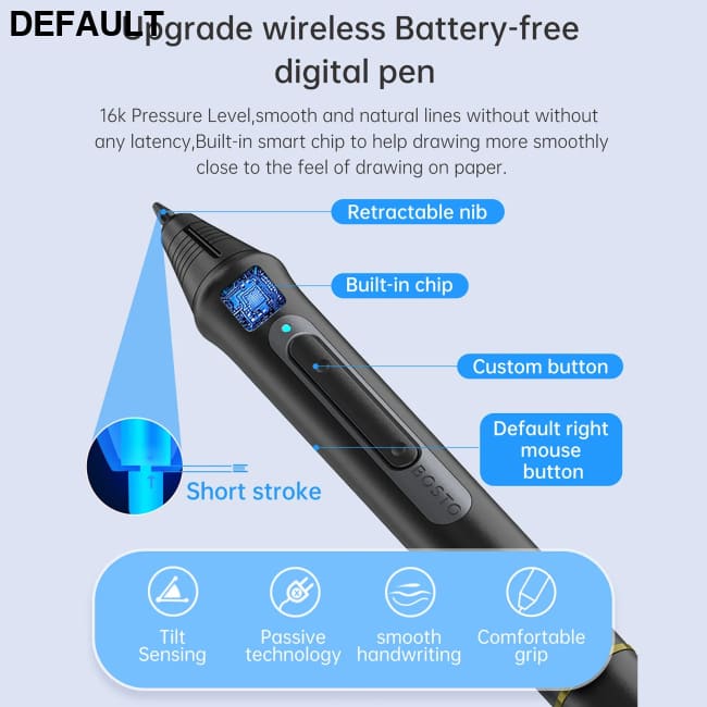【Battery-free Pen】 The stylus needs no power, ergonomic design, which can effectively reduce the fatigue caused by holding a pen for a long time. With 2 custom function buttons for making your drawing more conveniently. The left side of the digital board can absorb the pen because of the magnetism, so that when carrying the pen is not afraid to forget.