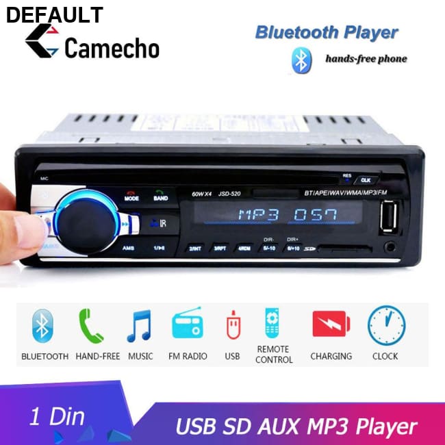 Camecho 12V Bluetooth Car Stereo FM Radio MP3 Audio Player Charger USB SD AUX Auto Electronics Subwoofer In-Dash 1 DIN Autoradio