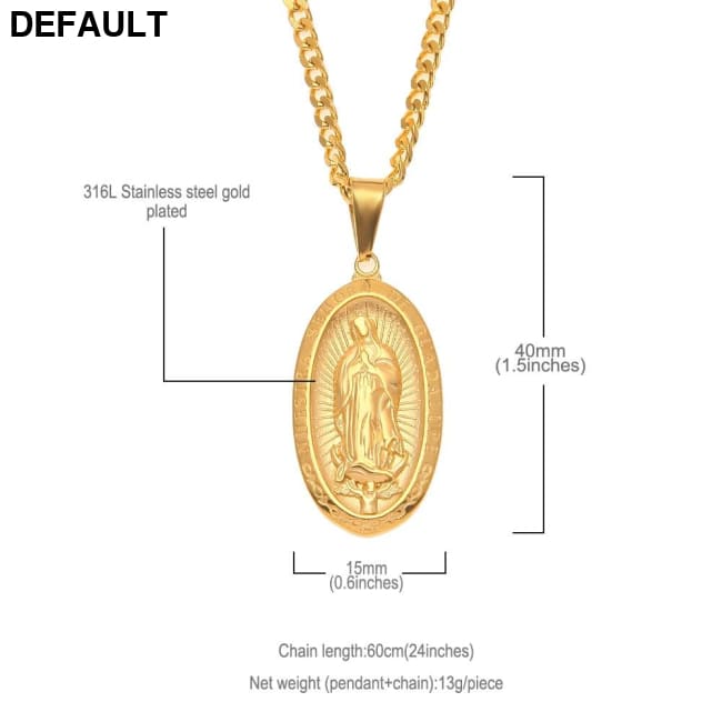 Catholic Religious Virgin Mary Necklace Pendant Stainless Steel Gold Color Cross Medallion Sterling Silver Necklaces
