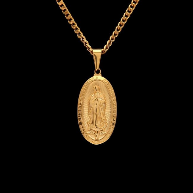 Catholic Religious Virgin Mary Necklace Pendant Stainless Steel Gold Color Cross Medallion Necklace