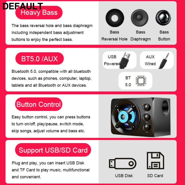 Computer Combination Speakers AUX USB Wired Wireless Bluetooth Audio System Home Theater Surround SoundBar for PC TV