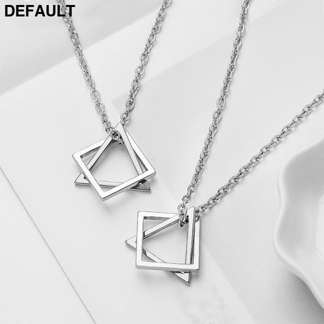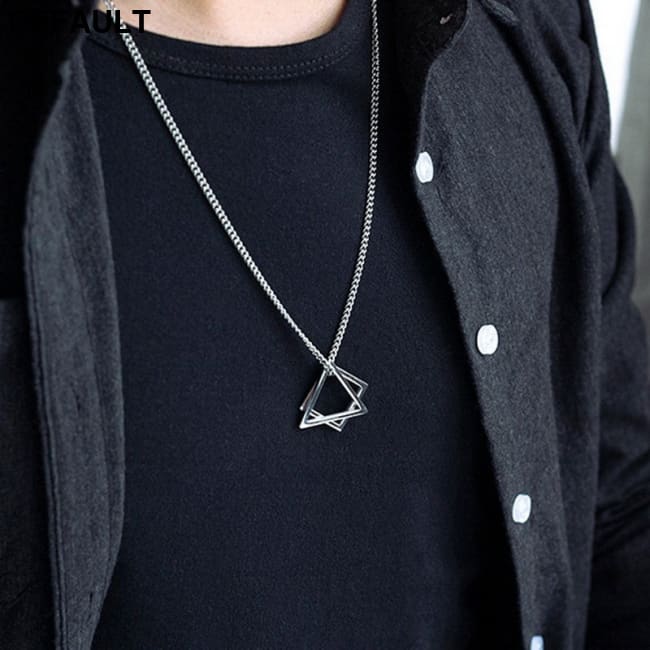 Rinhoo Trendy Interlocking Square Triangle Pendant For Men Stainless Steel Geometric Stacking Streetwear Hip Pop Rock Necklace
