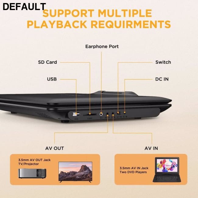 Region FreeDBPOWER portable DVD player with large screen, can supports all region DVDs(except for Blu-ray). This dvd player with screen has compatible format diversity for CD, DVD, CD-R/RW, DVD-R/+R, DVD+RW/-RW, VCD, SVCD, up to 32GB USB and SD Card |