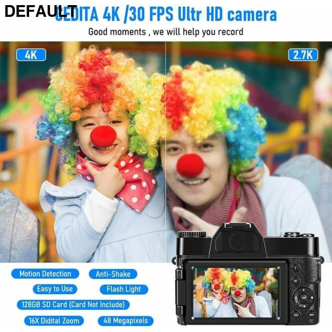 • 【4K ♥48MP Camera】:The 4k digital camera, with 4k/30fps smooth video resolution and photographs at 48MP, can better help you capture every excellent moment while vlog recording.Meanwhile the vlogging camera supports 16X Digital Zoom(Not Autofocus),Video Pause,Recording while Charging ,Motion Detection, Loop Recording, Continuous Shooting,Silent Recording , Self-Timer.The camera can be as a nice gift for you and your family or friends.
