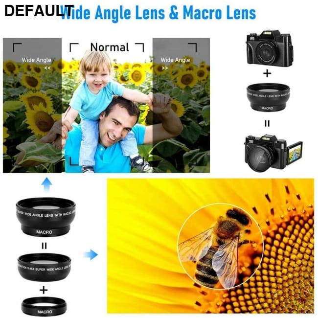 • 【Camera with Wide Angle Lens♥Macro Lens】: This digital vlogging camera comes with a 52mm wide angle lens with macro lens ,so the camera is great for large scenery and close-up shooting of the micro object. It can widen the viewing angle for a wider range of scenery.The macro lens allows you to take close-up photography with clear details such as flowers and insects etc.Mode button is integrated on the camera's top knob, you just turn the knob to switch photos, videos and other modes.