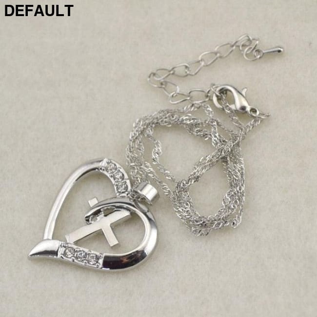 Silver Plated Jewelry Necklace Women Cross Heart Love Crystal Pendant Necklace Choker Necklaces Top Qualit