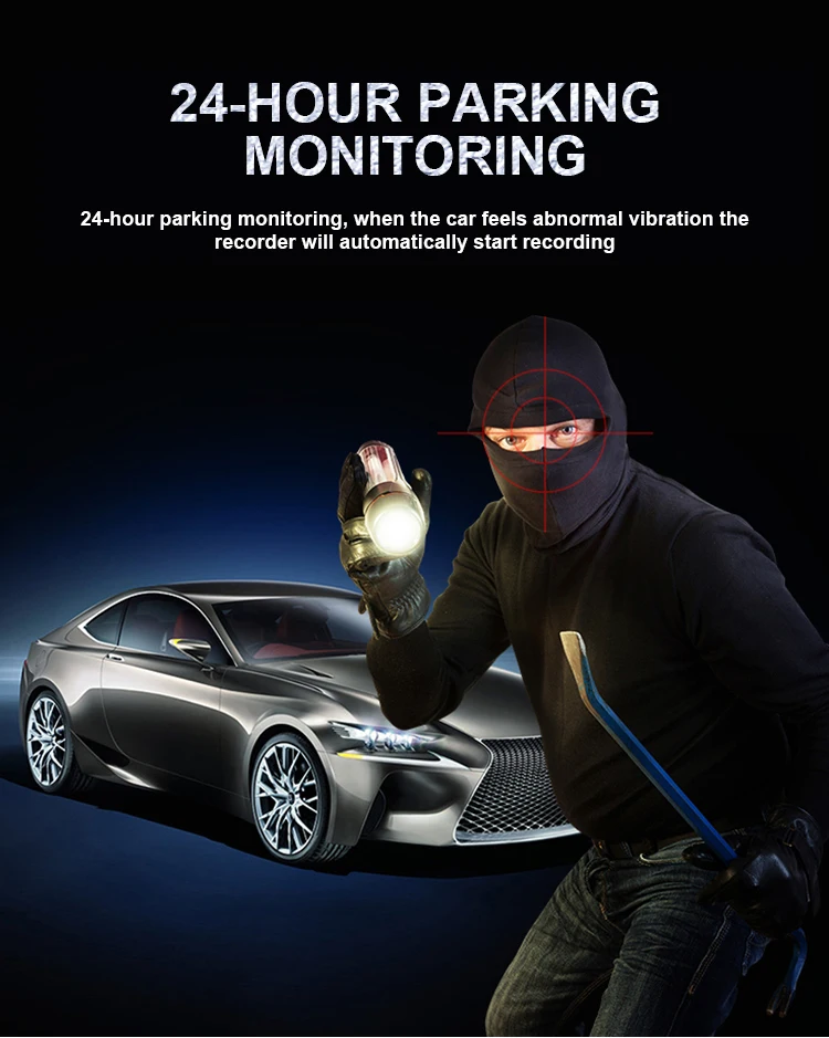 FULL COLOR+G-Sensor+park MODE+Loop recording+Motion Detection+Emergency Accident Lock+Build-in Battery