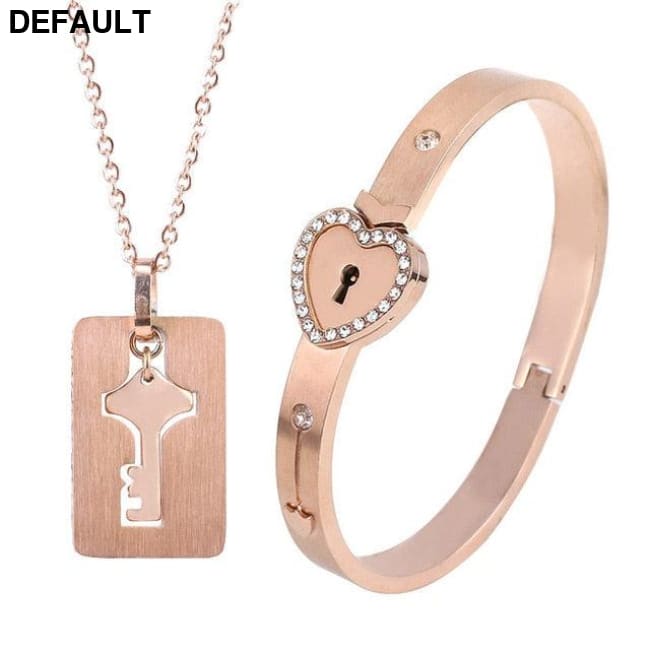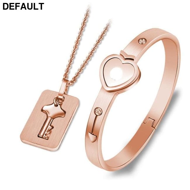Couple Lovers Jewelry Love Heart Lock Bracelet Stainless Steel Bracelets Bangles Key Pendant Necklace Rose Gold Color