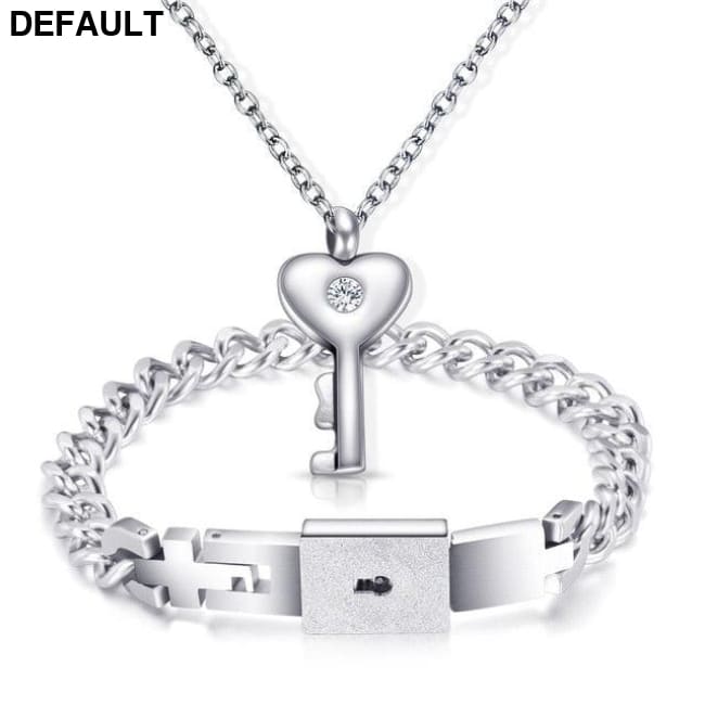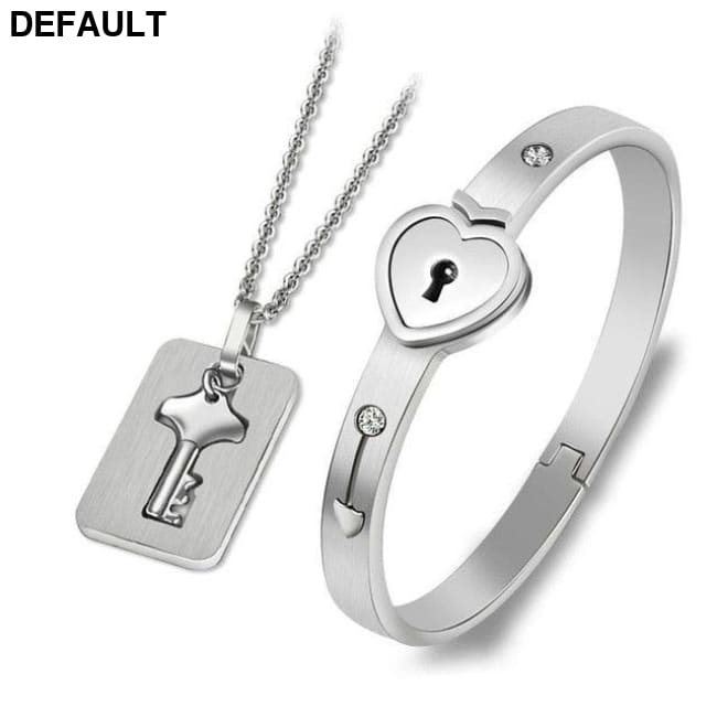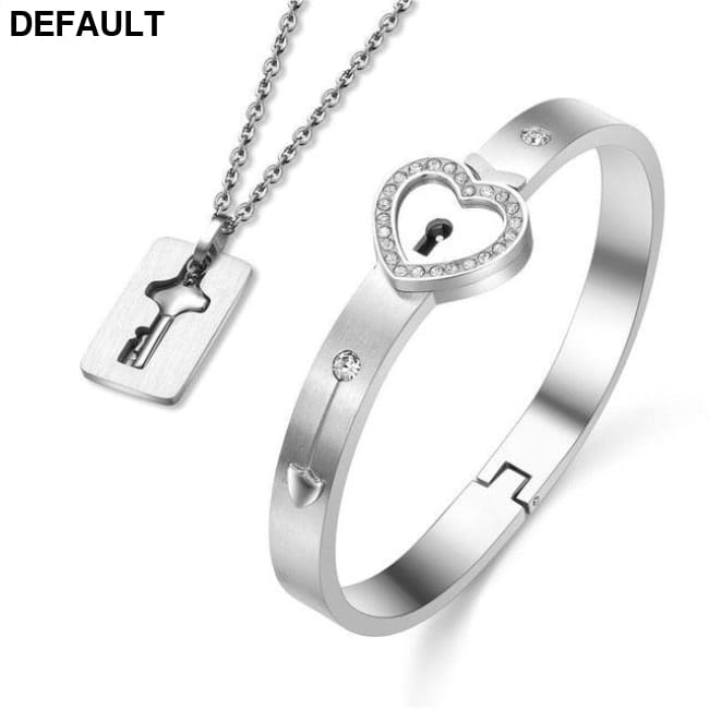 Couple Lovers Jewelry Love Heart Lock Bracelet Stainless Steel Bracelets Bangles Key Pendant Necklace Imitation Rhodium