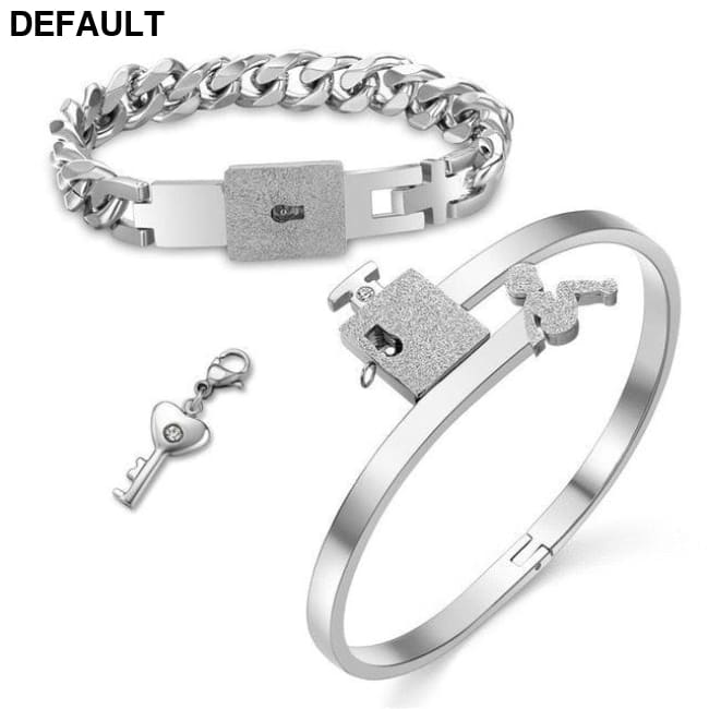 Couple Lovers Jewelry Love Heart Lock Bracelet Stainless Steel Bracelets Bangles Key Pendant Necklace Color Sterling