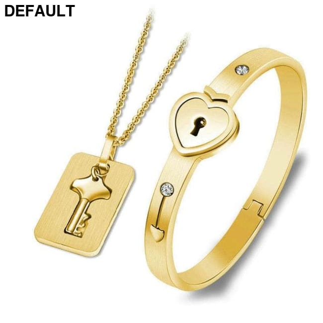 Couple Lovers Jewelry Love Heart Lock Bracelet Stainless Steel Bracelets Bangles Key Pendant Necklace Gold-color