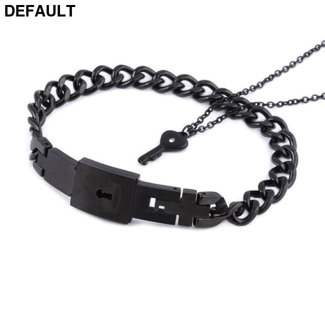 Couple Lovers Jewelry Love Heart Lock Bracelet Stainless Steel Bracelets Bangles Key Pendant Necklace Black Gun Plated