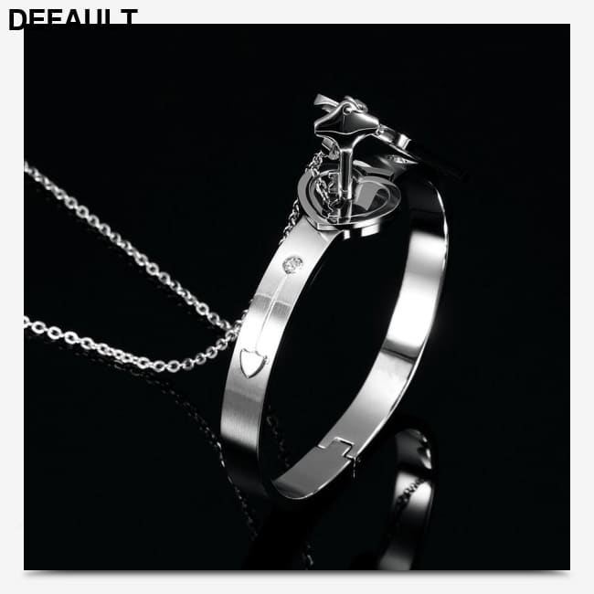 Couple Lovers Jewelry Love Heart Lock Bracelet Stainless Steel Bracelets Bangles Key Pendant Necklace Sterling Silver