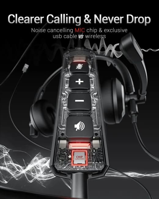 • ✅【Clearer Calling with Noise Cancelling MIC&Never Drop】Using the noise reduction technology can eliminate up to most surrounding noise,and wired noise cancelling is never drop and more stable than wireless headset. USB headphones can pick up your voice more accurately, allowing your friends to hear you more clearly. This is perfect for online courses, Skype chats, call centers, webinar presentations, office, corporate, Rosetta Stone, Dragon Talk, conference calls, and remote work.