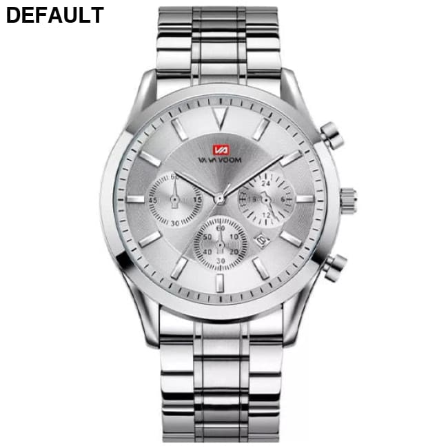 Men’s Three-eye Multi-function Sports Quartz Watch White faced silver steel chain / CN Men Sport Watches