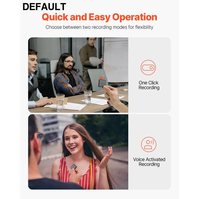 The audio recording device comes with a default noise cancellation feature, ensuring clear sound capture even in noisy surroundings. It effectively reduces background noise, allowing voices to come through loud and clear. You can focus on what's being said without distractions.
