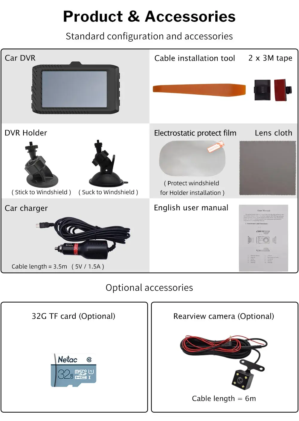 When you choose the rearview camera, please pay attention that our standard rearview camera is 6 meters, some long length cars need 7~10 meters, please check carefully before payment.