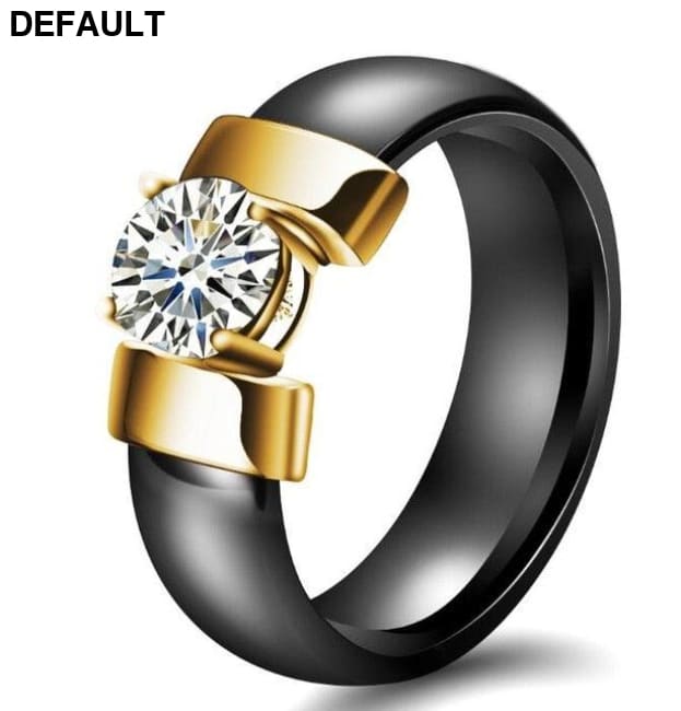 Plus Cubic Zirconia Ceramic Rings gold black / 6 Sterling Silver