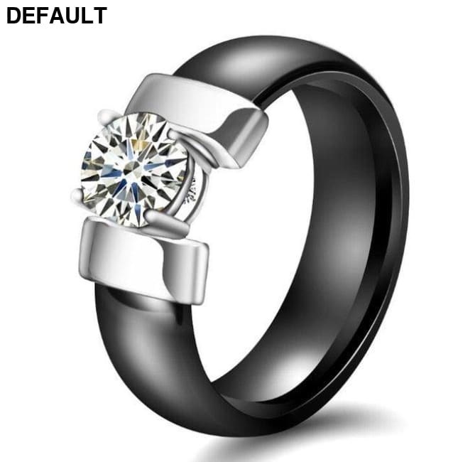 Plus Cubic Zirconia Ceramic Rings silver black / 6 Sterling Silver