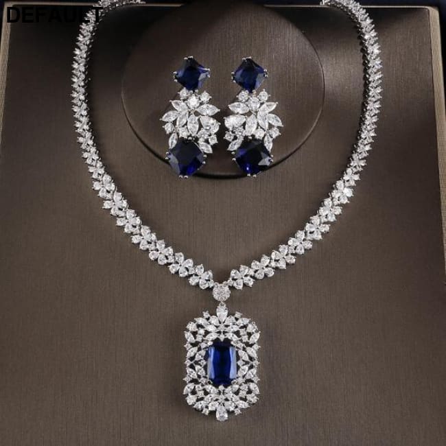 Cubic Zirconia Tag Necklace Earring Jewelry Set Blue Sterling Silver Sets Necklaces