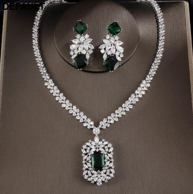 Cubic Zirconia Tag Necklace Earring Jewelry Set Green Sterling Silver Sets Necklaces