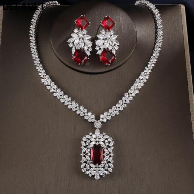 Cubic Zirconia Tag Necklace Earring Jewelry Set Red Sterling Silver Sets Necklaces