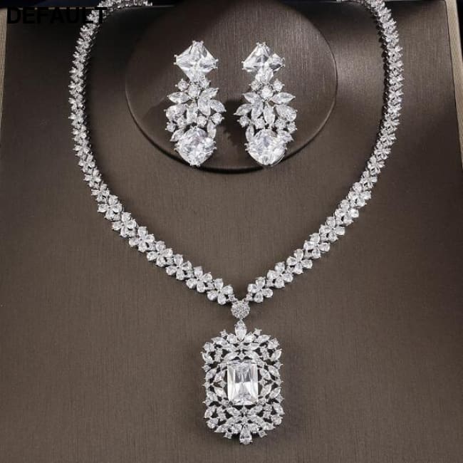 Cubic Zirconia Tag Necklace Earring Jewelry Set White Sterling Silver Sets Necklaces