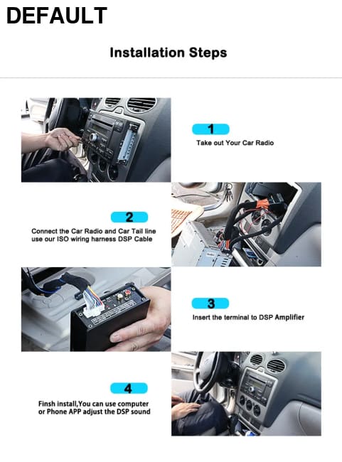 Answer:After installing our DSP amplifier, your original car sound quality will be improved by 70%. If you replace the original car's speaker, the effect will be very amazing, beyond your imagination. Your car will just like a live concert.
