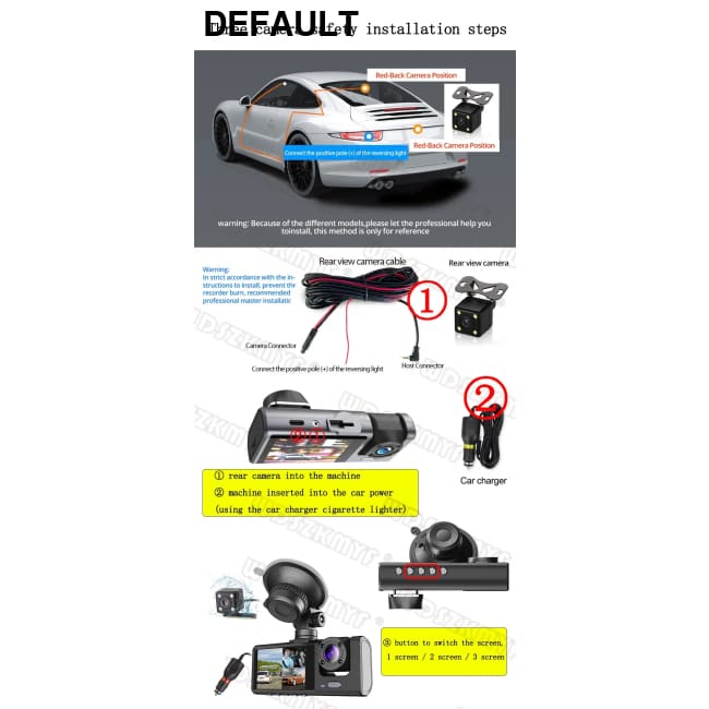 Correct installation of the external rear camera three screen image method (NOTE: do not use a rechargeable treasure or cell phone charger)
