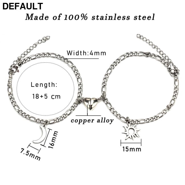 2Pcs Sun Moon Charm Magnet Attraction Stainless Steel Bracelets For Couples Men Women Jewelry Wholesale Valentine’s Day