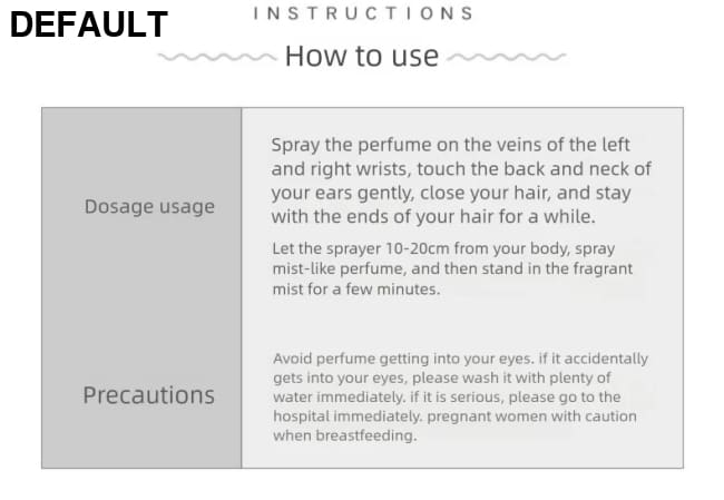 Ingredient: women perfume