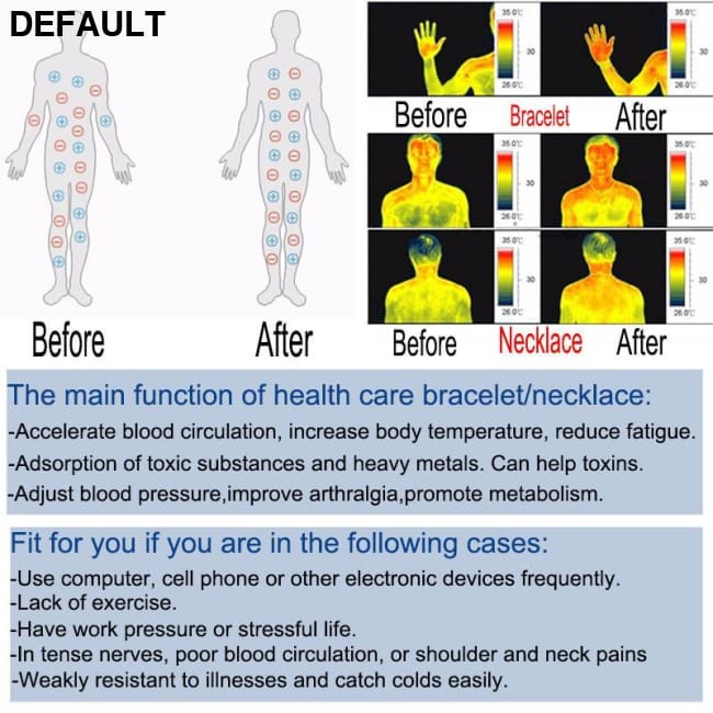 With bracelet: The negative and positive ions will be restored for a more balanced body. This will enhance your body functions and improve overall health.