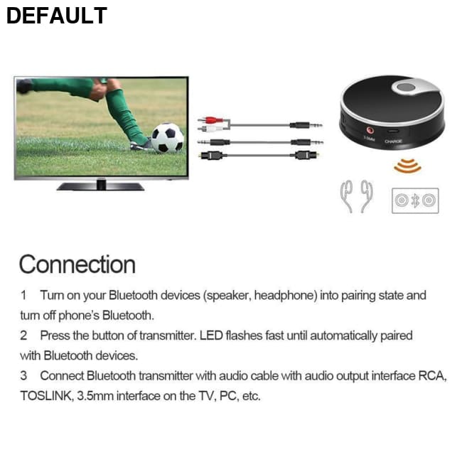 -Transmitting high definition music to bluetooth receiver with 3 kinds of ways: 3.5MM AUX, optical(TOSLINK) digital and coaxial audio